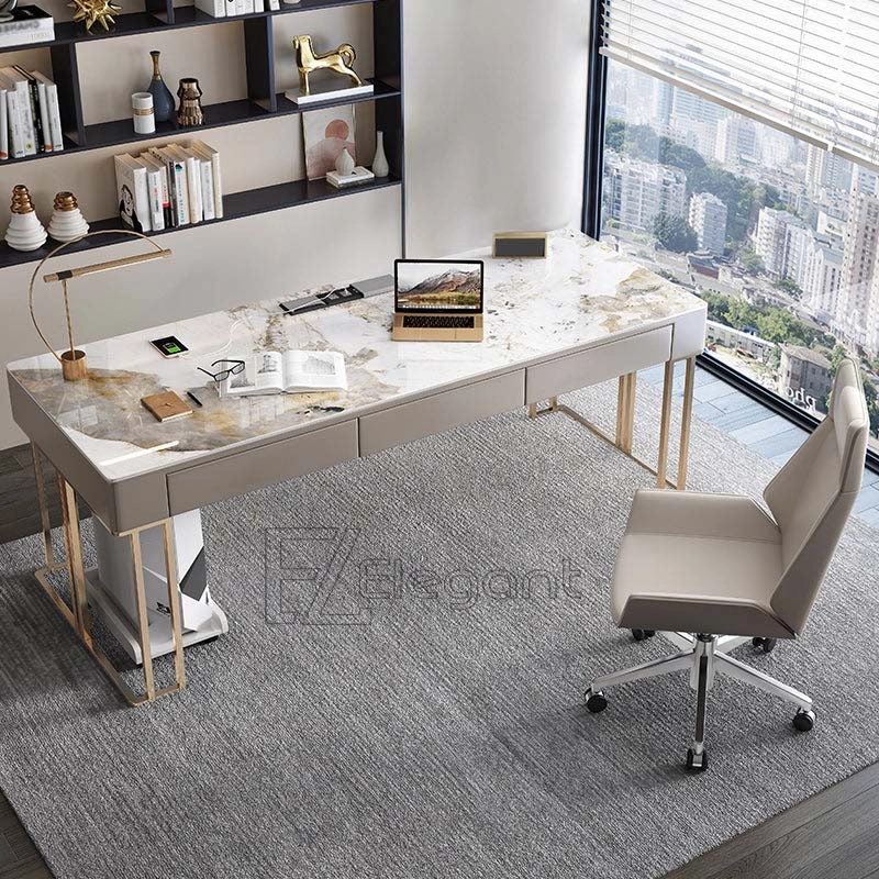 Bạn đang tìm kiếm mẫu bàn làm việc cao cấp vừa tinh tế trong thiết kế, vừa tỉ mỉ, sắc nét trong từng chi tiết hoàn thiện? Sản phẩm bàn làm việc mặt đá sang trọng này sẽ là lựa chọn hoàn hảo dành cho không gian nội thất phòng làm việc giám đốc hay phòng làm việc tại nhà.