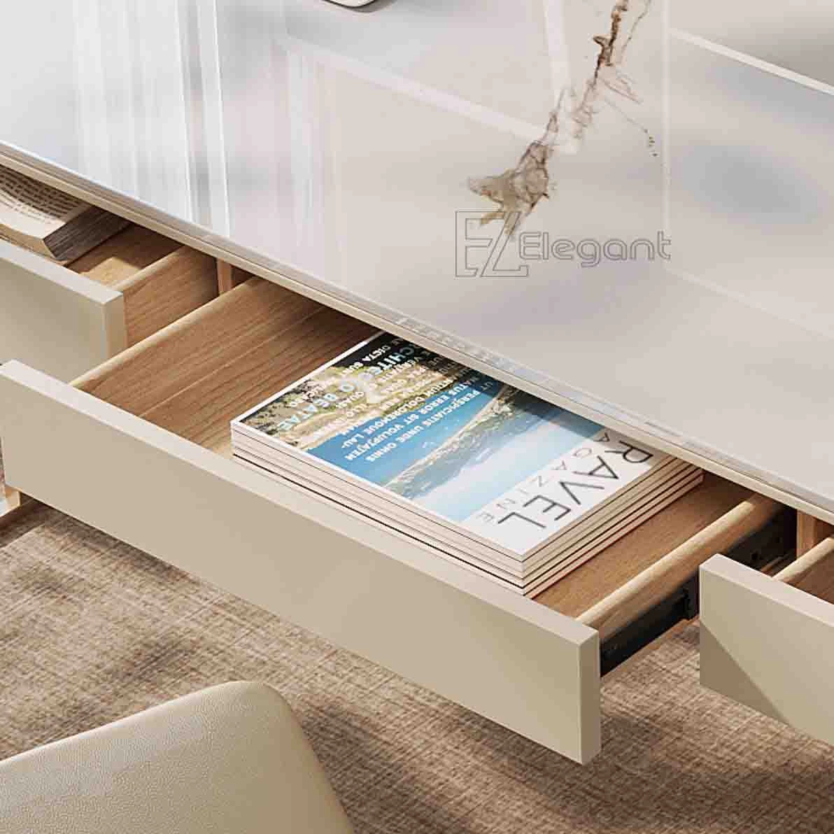 Mặt bàn sử dụng đá Ceramic Pandora làm điểm nhấn vừa mang lại sự sang trọng tinh tế vừa có độ cứng cao, chịu lực tốt, chống trầy xước và dễ dàng vệ sinh.