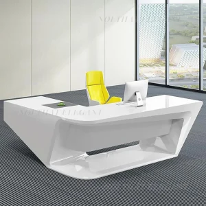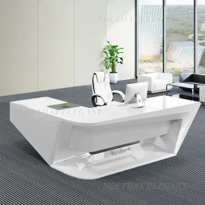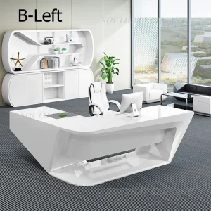 Mẫu bàn giám đốc chữ L cao cấp với thiết kế hiện đại, đường nét bo tròn tinh tế và kiểu dáng hình học độc đáo mang đến sự khác biệt cho không gian làm việc của bạn. Với gam màu trắng chủ đạo, sản phẩm tạo cảm giác sang trọng, chuyên nghiệp, đồng thời thể hiện rõ vị thế của người lãnh đạo.