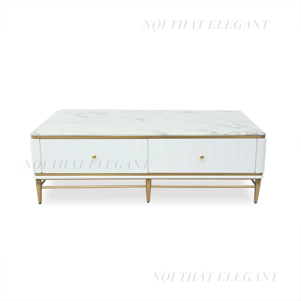 Bàn Sofa hình chữ nhật, mặt đá Cẩm thạch cao cấp, chân và nẹp inox mạ, có 4 ngăn kéo – EL-BT19