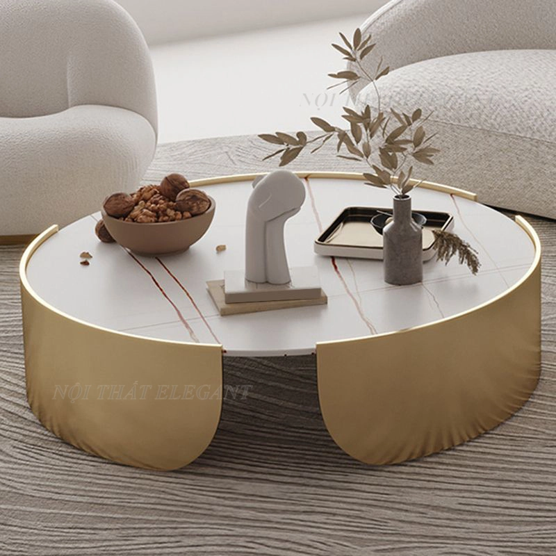 Bàn trà được làm từ khung inox mạ PVD màu gold, kết hợp cùng mặt đá Ceramic cao cấp, chống trầy xước, thấm ngấm giúp tăng độ bền của sản phẩm .