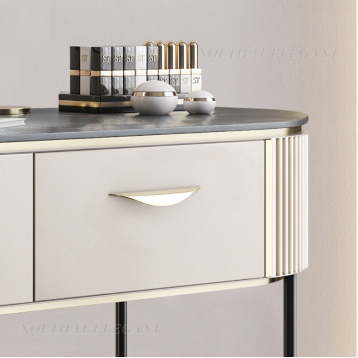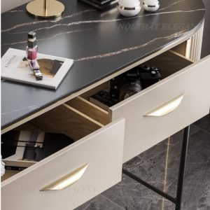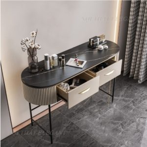 – Với kiểu dáng hiện đại mang phong cách Bắc Âu trang nhã, mặt bàn bằng đá Ceramic chống trầy xước và sang trọng kết hợp với các chi tiết soi tinh tế bàn trang điểm này sẽ là một sự bổ sung lý tưởng cho căn phòng ngủ của bạn.
