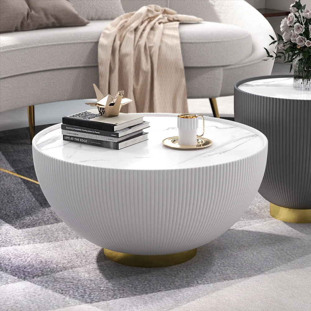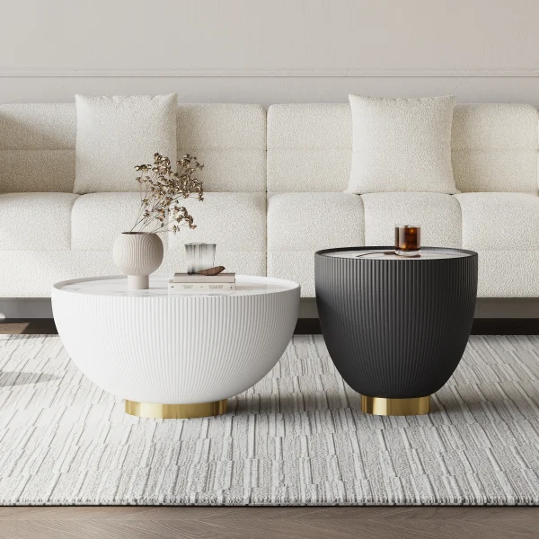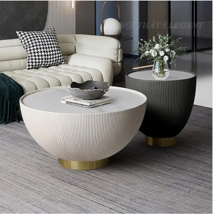 Bộ bàn trà hình trống này có phần trên rộng nhẵn có thể để sử dụng và trưng bày các vật dụng trang trí khác nhau. Được tạo thành từ khung bọc da PU, chân đế bằng thép không gỉ , mặt bàn bằng đá không thấm nước, chống trầy xước . Bộ bàn trà này có độ bền cao và thiết kế tổng thể sang trọng sẽ là điểm nhấn cho căn phòng gia đình bạn .
