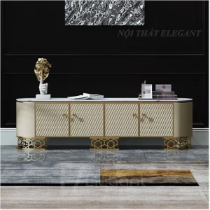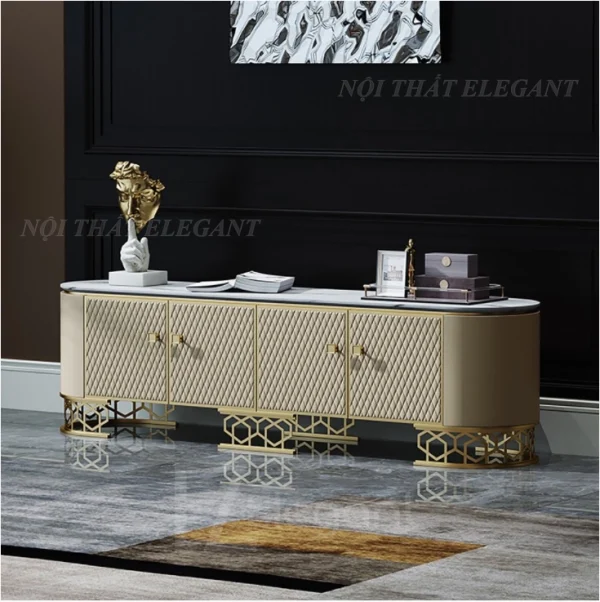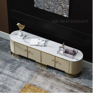 Kệ tivi bọc da Microfiber sang trọng, mặt đá, chân inox mạ PVD – EL-TV14