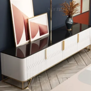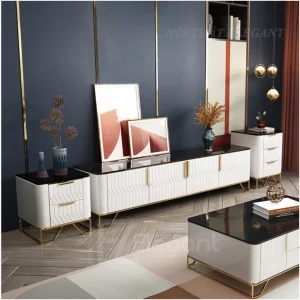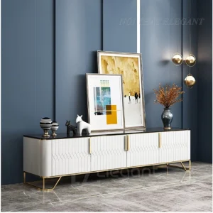Kệ tivi cao cấp, mặt kính cường lực, khung inox mạ PVD, có 2 ngăn mở lớn – EL-TV16
