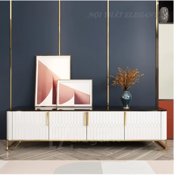 Kệ tivi được thiết kế với các góc bo cong tinh tế, các chi tiết hoa văn soi nghệ thuật, sản phẩm mang một nét sang trọng, hiện đại và lôi cuốn. Với 2 ngăn mở lớn, kệ tivi này có nhiều không gian để lưu trữ tất cả các phụ kiện phương tiện truyền hình cần thiết của bạn.