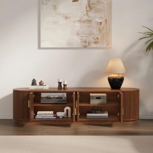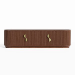 Kệ tivi ELTV26 mang phong cách hiện đại bo góc mềm mại, tay nắm vàng đồng tinh tế – lựa chọn hoàn hảo cho không gian sang trọng và ấm cúng.
