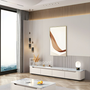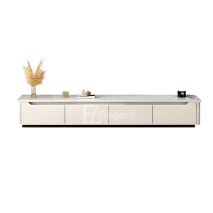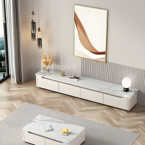 Kệ tivi mặt đá Cẩm thạch trắng, bề mặt sơn Inchem bóng mờ, phụ kiện giảm chấn Hafele – EL-TV02