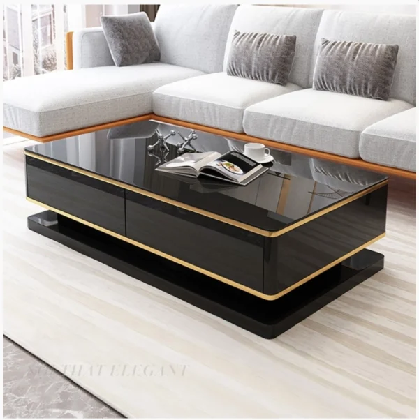 Bàn trà hiện đại là một trong những sản phẩm nội thất không thể thiếu trong không gian phòng khách của mỗi gia đình. Với thiết kế bo cong tinh tế, cùng lớp sơn đen bóng, mặt bàn kính cường lực màu đen kết hợp cùng viền inox mạ PVD màu gold tạo nên vẻ đẹp vừa sang trọng, vừa hiện đại khiến nó trở thành lựa chọn hàng đầu cho không gian sống của gia đình bạn .