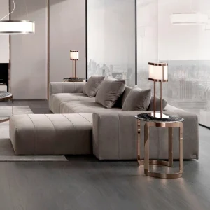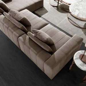 Bộ Sofa sử dụng những đường nét vuông vức, mạnh mẽ kết hợp với tông màu trung tính thanh lịch, phù hợp hoàn hảo với những không gian nội thất cao cấp, hiện đại hoặc tân cổ điển.
