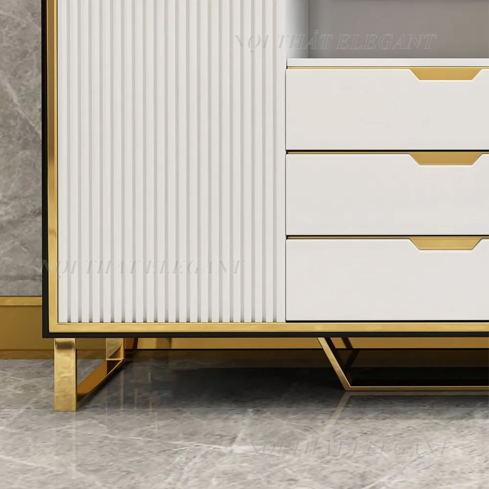 Tủ được thiết kế với 3 tông màu chủ đạo: đen – trắng – vàng, tạo nên tổng thể hài hòa, thời thượng và dễ phối với mọi phong cách nội thất.